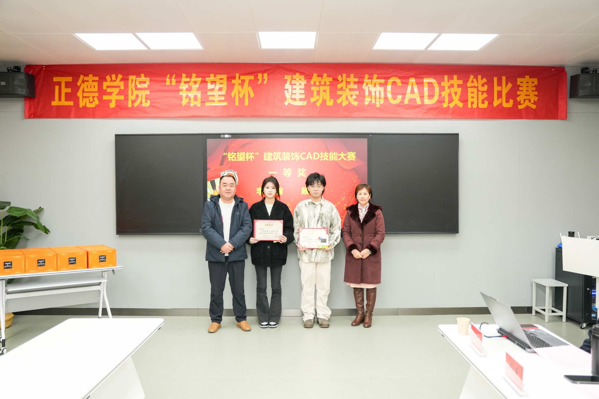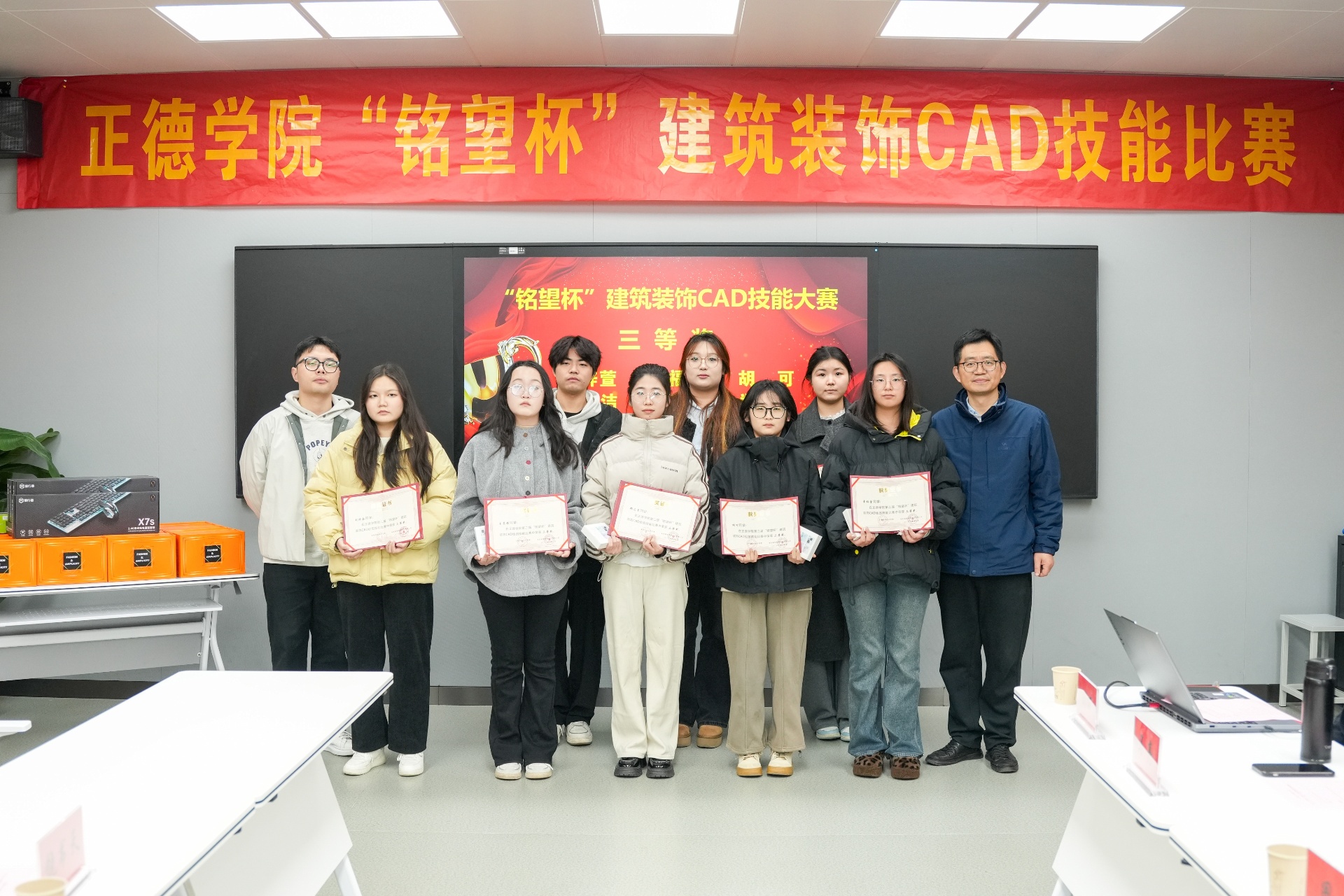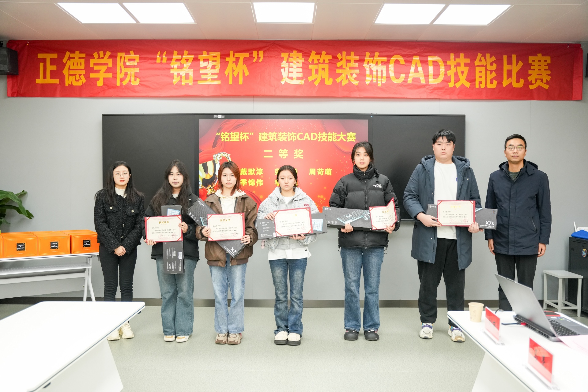 本次大赛面向2023级建筑装饰工程技术、建筑室内设计、环境艺术设计及工程造价专业的学生,旨在通过竞赛的形式,全面考察和提升学生的CAD绘图及效果图制作能力。经过激烈的角逐,共有30名学生成功入围总决赛,并评选出一等奖2名、二等奖5名、三等奖8名以及若干优胜奖。南京铭望装饰设计有限公司为获奖学生提供了丰厚的奖品,以表彰他们在比赛中的卓越表现。