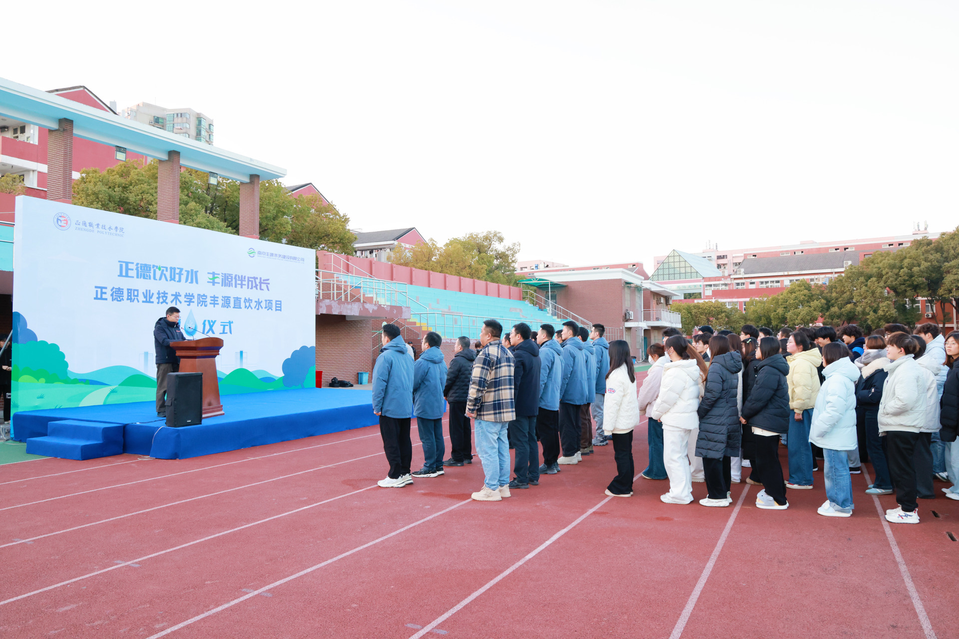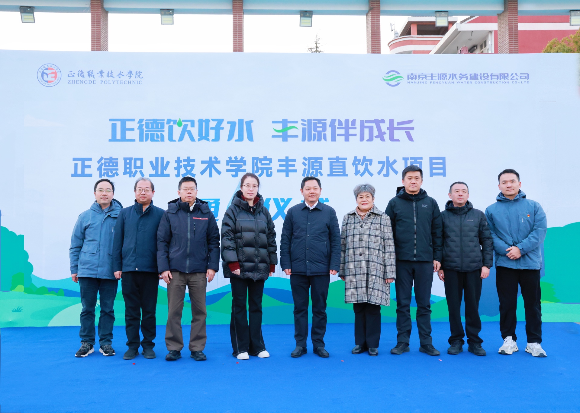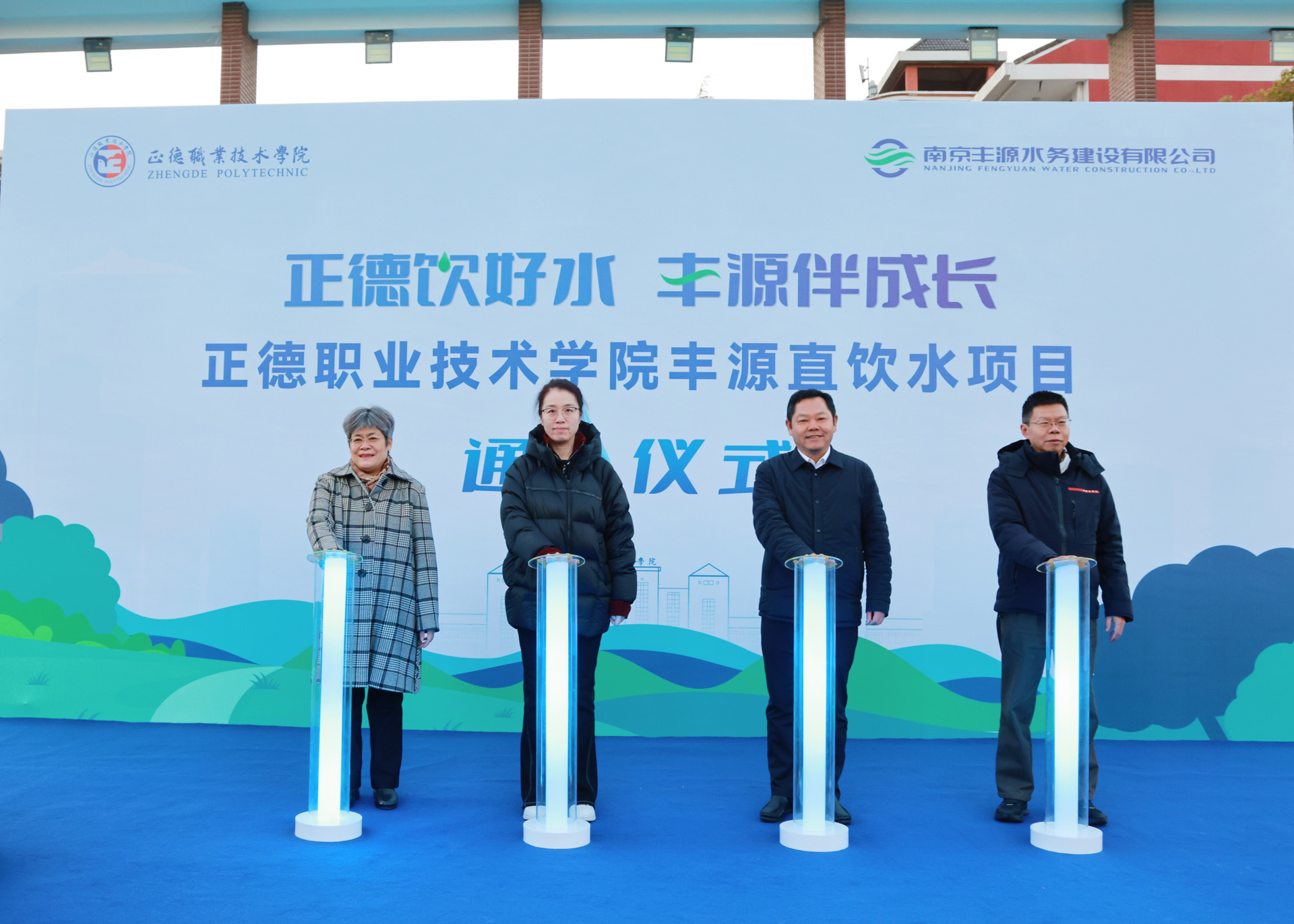 12月25日下午,51猎奇 管道直饮水项目通水仪式在田径场隆重举行。南京水务集团有限公司党委副书记、董事张忻,副总经理、党委委员周克梅,南京丰源水务建设有限公司党支部书记、董事长钱峰,总经理蔡光阳,51猎奇 院长孙永荣,副院长高斌,院长助理、党政办公室主任王伟出席仪式。丰源水务公司、51猎奇相关部门负责人及150余名师生代表齐聚现场,共同见证这一重要时刻。