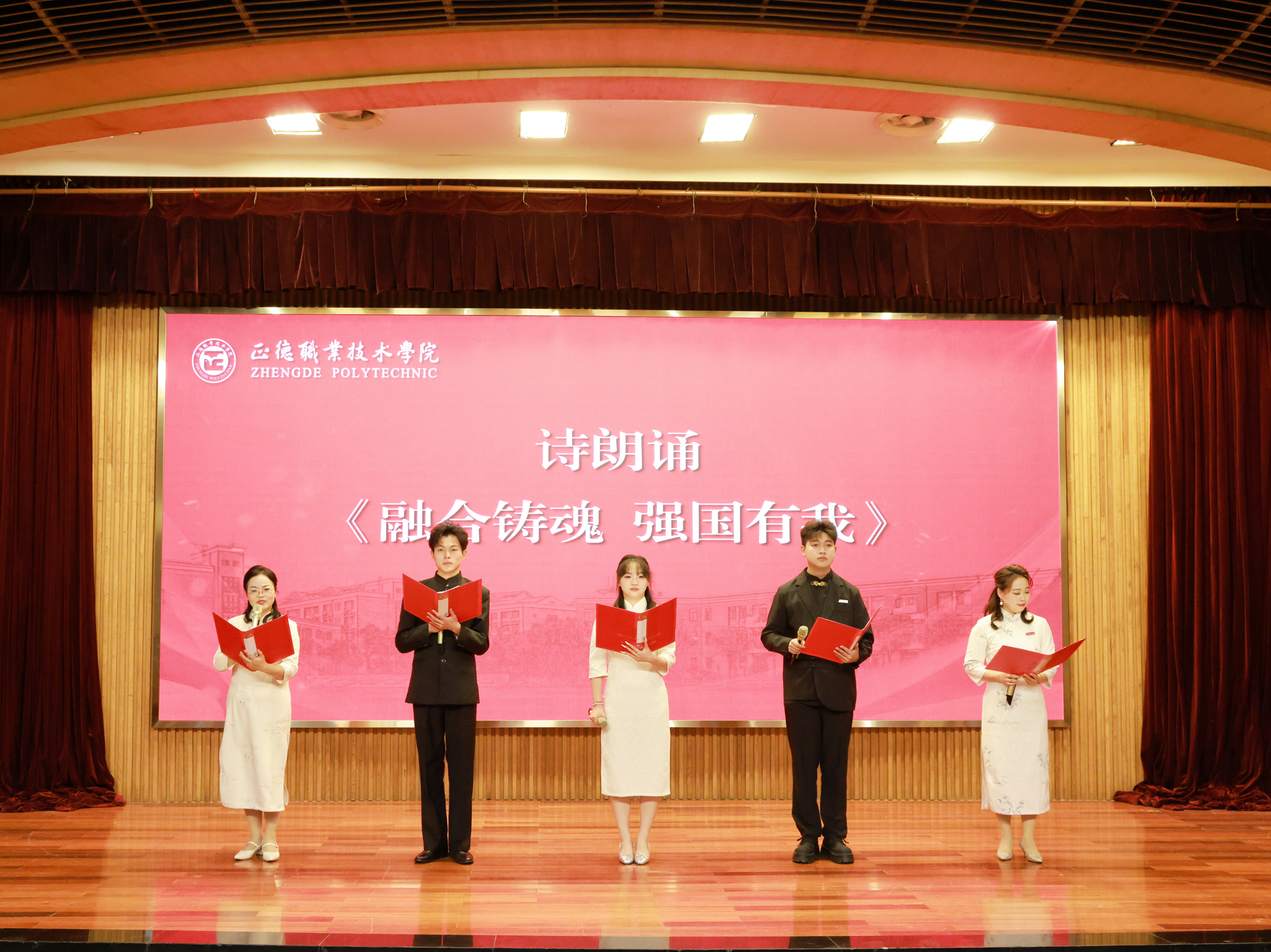 大会现场,师生代表共同朗诵原创诗歌《融合铸魂 强国有我》。朗诵者以饱满的情感、铿锵的语调,回顾了51猎奇一年来凝聚校企合力、推动“军工为峰,多域并举”战略转型的艰辛历程,抒发了全院师生扎根教育、赋能产业、助力强国建设的壮志豪情,也表达了对51猎奇高质量发展的美好期许。