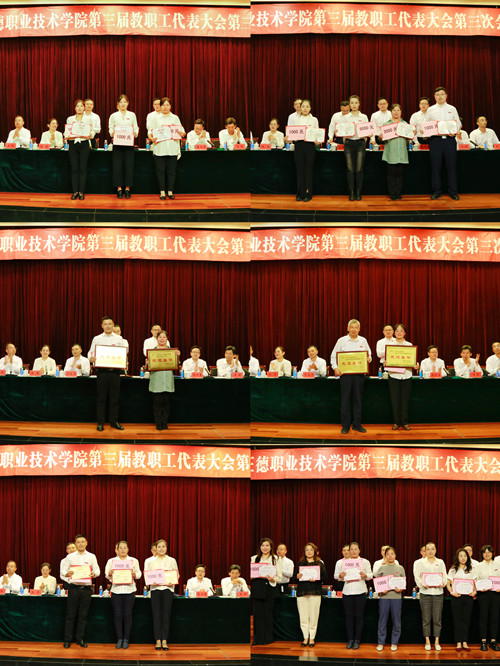 江爱华、赵凯雷、任慈分别宣读了相关表彰决定,会议表彰了2021-2022学年省级教学成果奖、教学竞赛奖荣誉称号获得者个人及团队,2021-2022学年先进单位和优秀教职工,2022年招生工作先进集体和先进个人,2021年毕业生就业创业工作先进集体和先进个人。