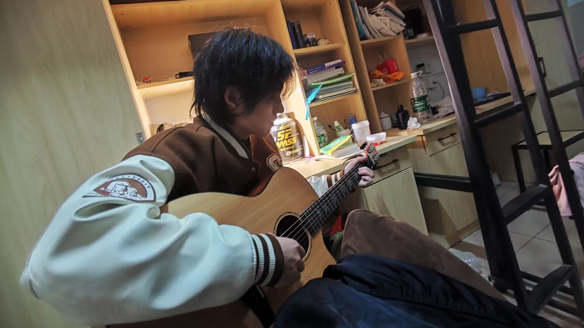 另外,在“寝室时光胶囊拍摄大赛”环节,各位学生也是八仙过海、各显神通,拿出看家本领,一展风采。既有深情的吉他弹唱,又有热血沸腾的健身实况等等,所有学生活力四射,用自己的方式展示着寝室独有的风格。
