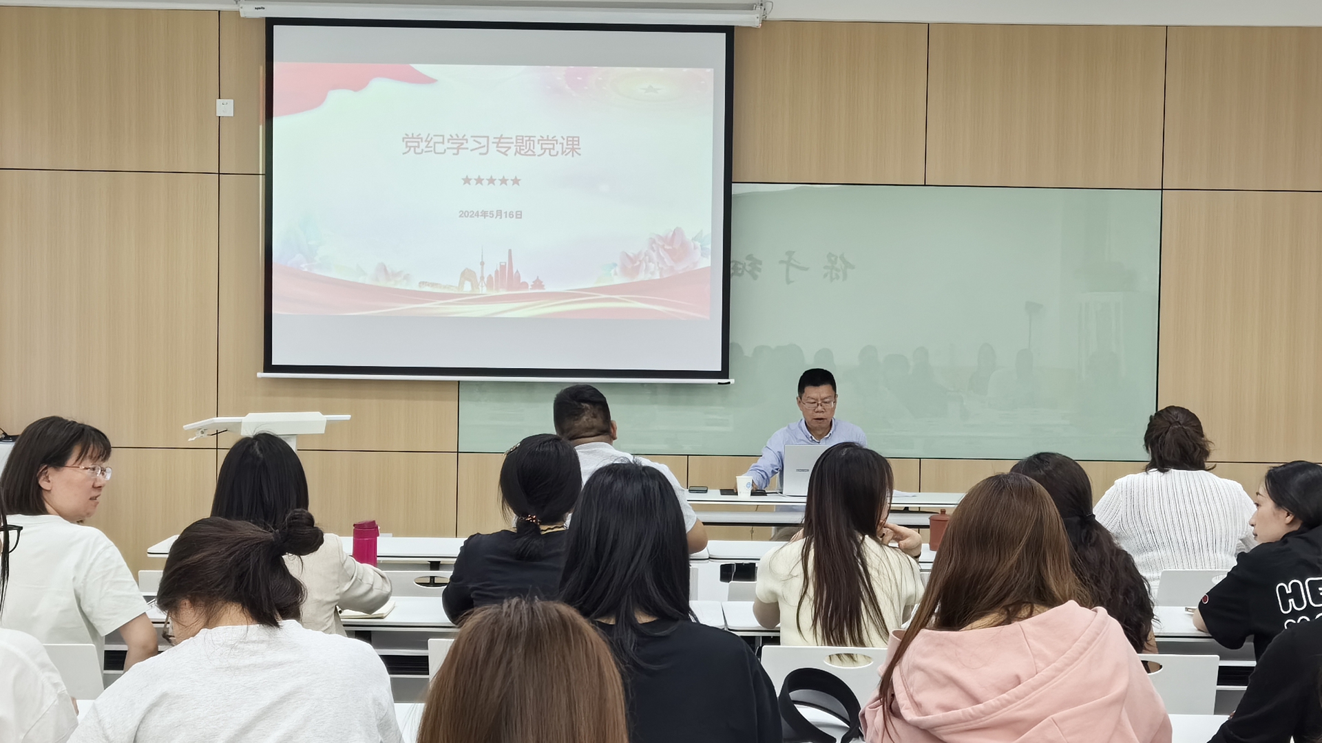 为深入学习贯彻党的二十大精神,认真落实习近平总书记关于思政教育重要指示精神,全面推动党纪条例学习,2024年5月16日,基础教育系党支部与机关第四党支部联合组织党纪条例联学活动。院党委委员、副院长高斌同志为全体党员、入党积极分子以及后勤社会化单位正式党员开展党纪条例学习专题党课。