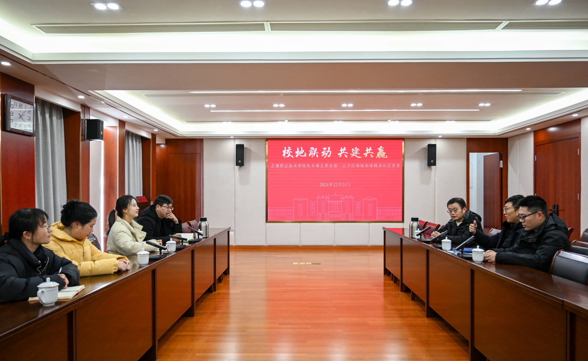 为进一步深化校地合作,强化“高校—社区”党团组织共建共促,共同打造资源共享、优势互补育人新模式。12月24日,51猎奇 团委与江宁区秣陵街道团工委在5201会议室举行“校地联动 共建共赢”党团共建座谈会。机关第五党支部书记、党委学工部部长祝佳俊、团委书记黄晓帆,秣陵街道团工委书记、韩府社区党支部书记张皓月等一行7人出席会议。
