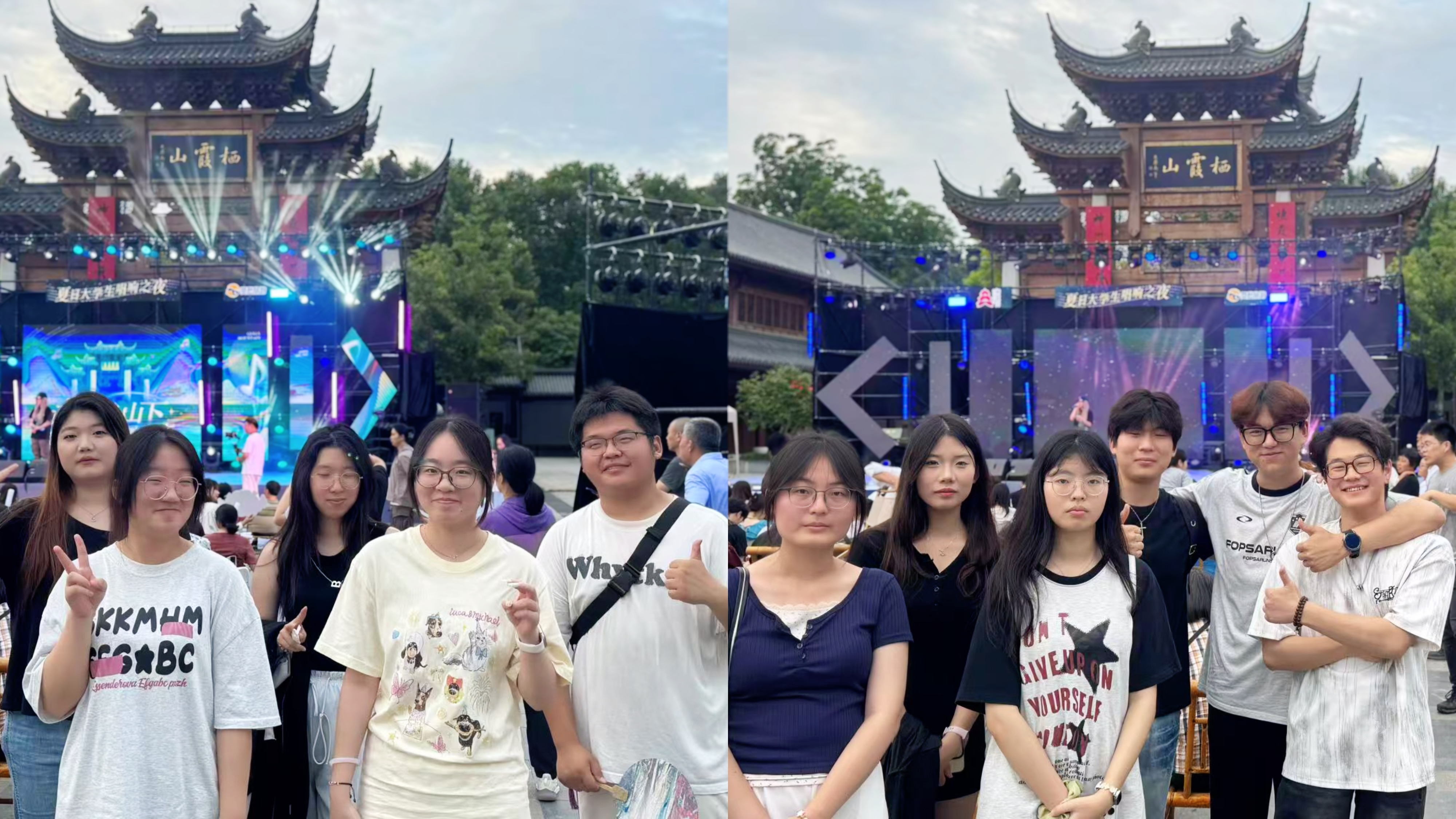 活动当天,栖霞山烟岚缭绕、晚风徐徐,山门牌坊前舞台灯光璀璨、乐音激扬,热情的观众早已聚集在台下。经管学子在统一组织下提前抵达现场,沿途感受千年名山的厚重文脉与现代音乐交织的律动氛围。