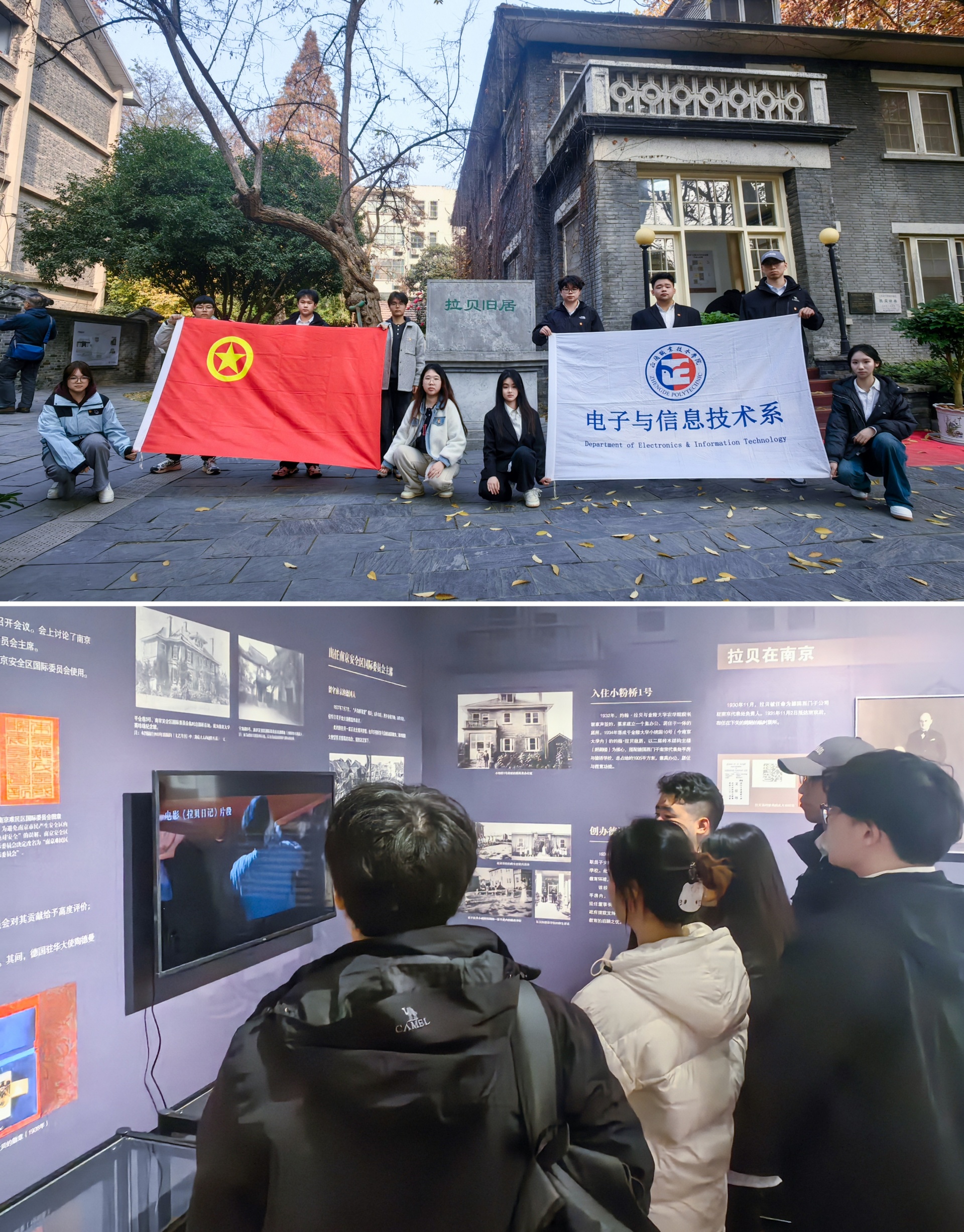 电子与信息技术系带领学生前往南京市小粉桥1号的拉贝旧居,开展“重温历史记忆,厚植家国情怀”主题教育活动。通过沉浸式实地参观、现场讲解,引导学生深入回望历史、感悟民族精神。在拉贝旧居这一历史见证地,同学们不仅了解了约翰·拉贝先生在南京大屠杀期间的人道主义事迹,更通过切身感受,增强了历史认同感与责任感。