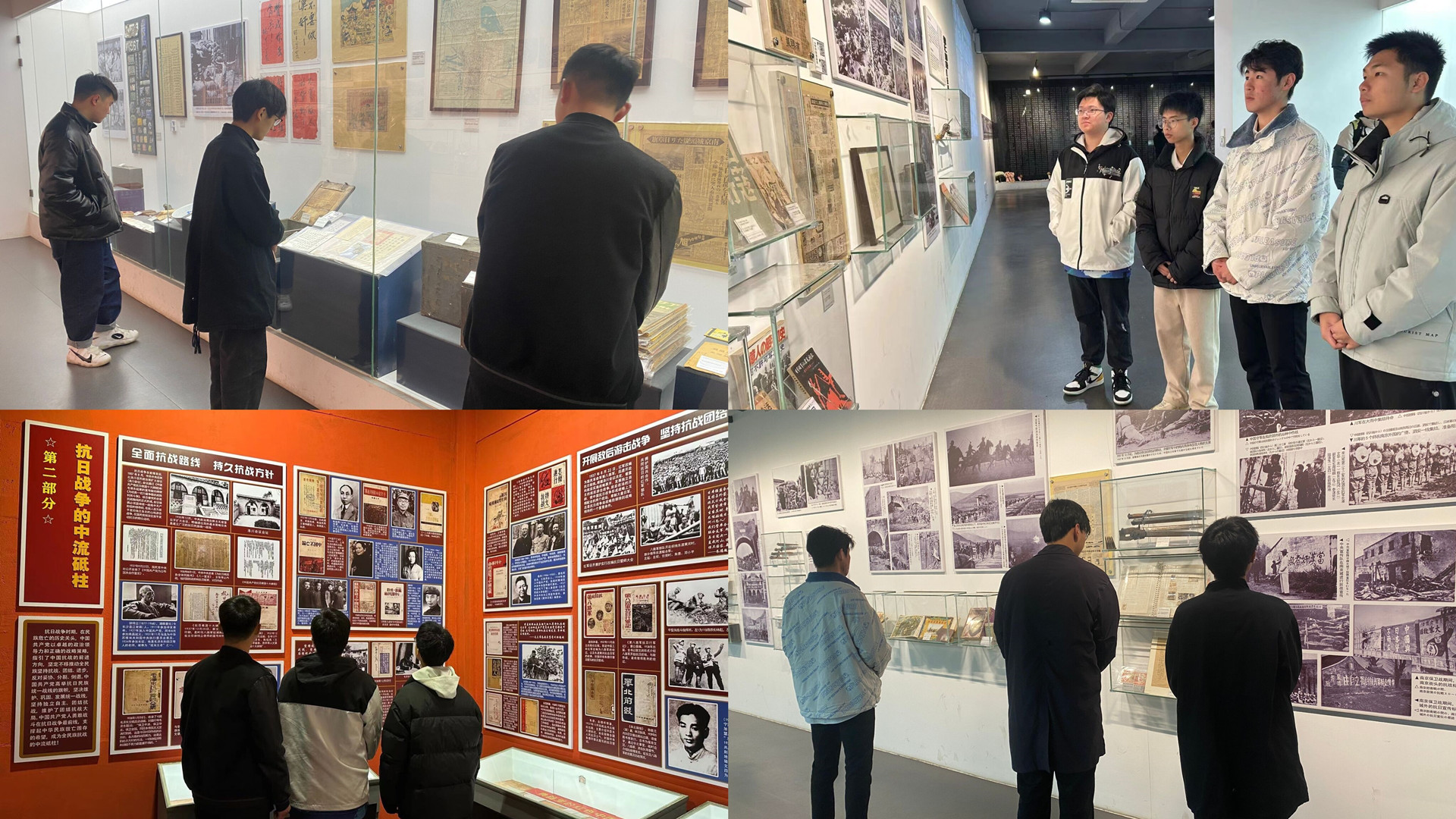 在馆内同学们进行了沉浸式的参观,在二楼展厅中的一面墙上,挂满了抗日战争时期的老照片,一个个为保家卫国的英勇战士,和满目疮痍的房屋深深刺痛着同学们的心,内心不断涌动着热血,仿佛又带着同学们回到了那个中国人民英勇顽强反抗侵略者的年代。