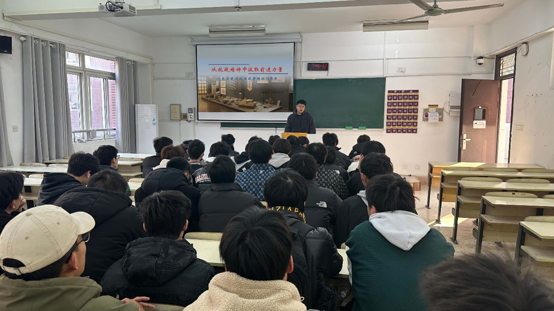 为了使本次团日活动更刻骨铭心,在活动前期组织了一次主题班会,会上辅导员顾轩宇介绍了在南京的这座特殊的博物馆。它以独特的视角,记录着这段往事,在这个和平年代,向人们发出不可忘却的警示,让人们铭记这段屈辱的、同时也令中华儿女奋起的历史,它就是南京民间抗日战争博物馆。