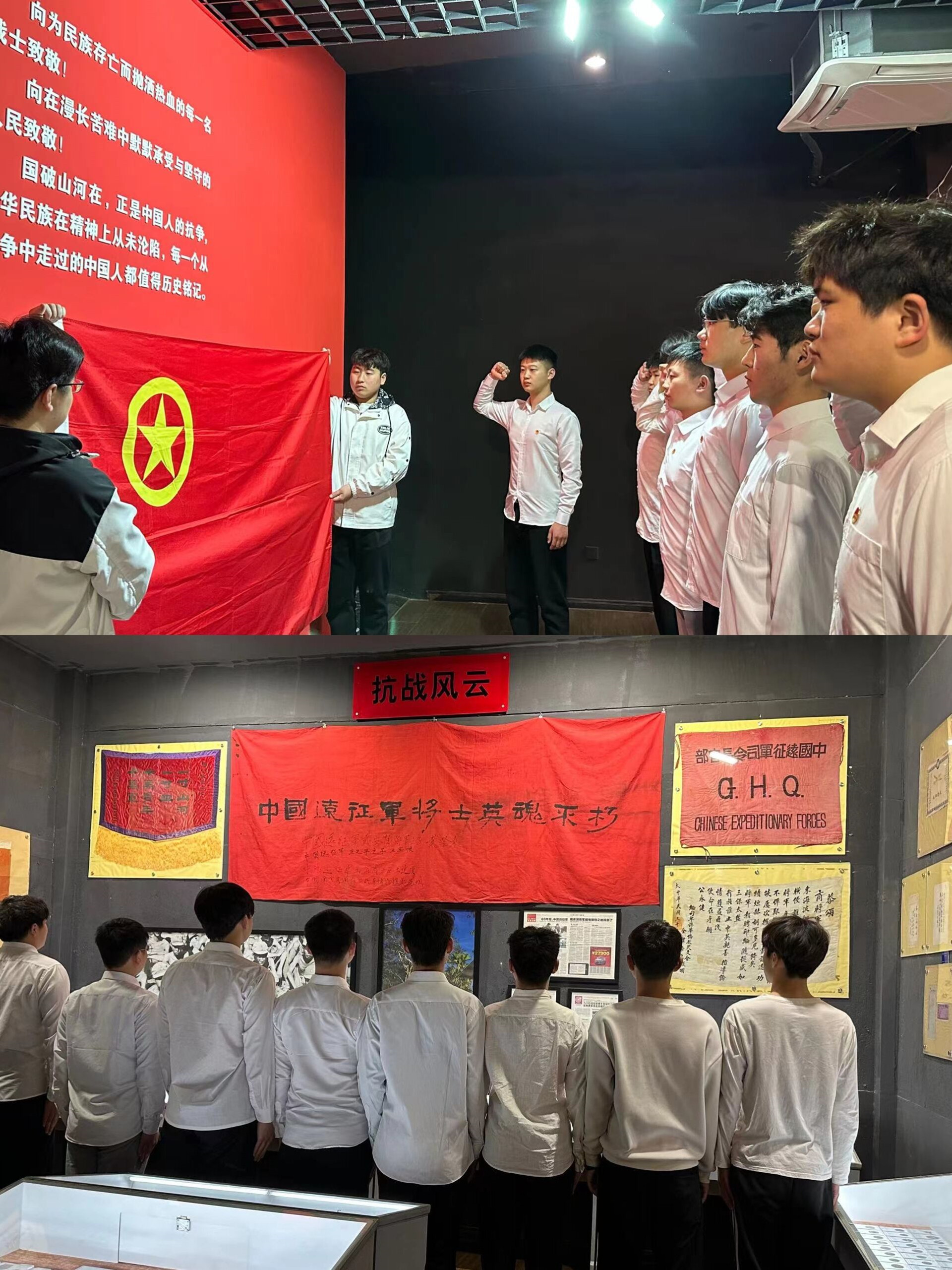 最后团员们对着团旗进行庄重的宣誓,并向为中华民族抛洒热血的每一名战士,向在漫长苦难中默默承受与坚守的人民,表达了最崇高的敬意。